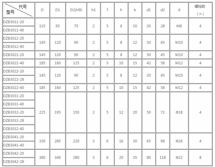 四、DZB系列閥門電動(dòng)裝置主要技術(shù)性能參數(shù)表